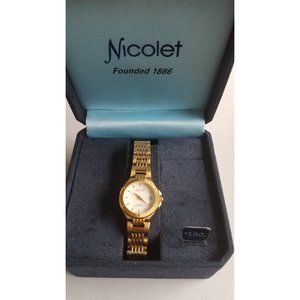 New NICOLET 1886 Women's Quartz Gold Tone Watch, Needs Battery, Great Gift!