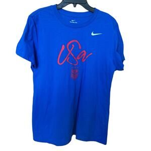 New ~ NIKE ~ USWNT 2023 Script Blue Soccer T-Shirt Size L 100% COTTON