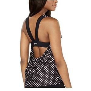 New! NIKE Womens Swim Tankini Top Black White Polka Dot New Loose Fit Size XS