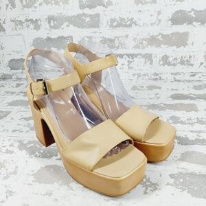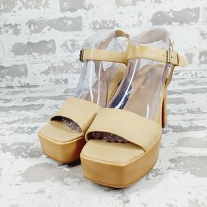 New NINE WEST Openit 9 Beige Vegan Platform Sandal D1041