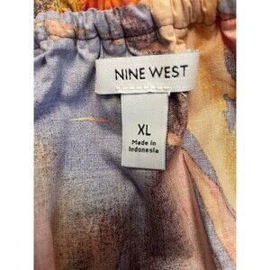 New NINE WEST Tropical Boho print Smocked Waist Off Shoulder Midi Dress Size XL