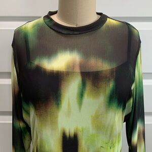 New NO TAGS printed abstract mesh top with camisole under with long sleeves