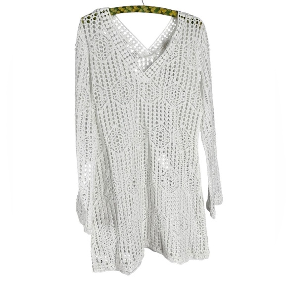 New NWOT La Blanca Waverly Long Sleeve Cotton Cover-Up Dress Medium Size white
