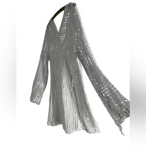 Crochet-inspired stitches lend delicate charm to this long-sleeve cover-up dress made of breezy cotton with abbreviated slits at the sides.