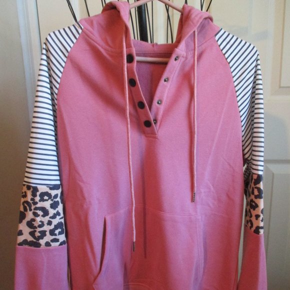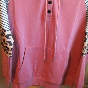 New NWOT Ladies Soft Pink Pullover Sweatshirt with Hood Snap Close