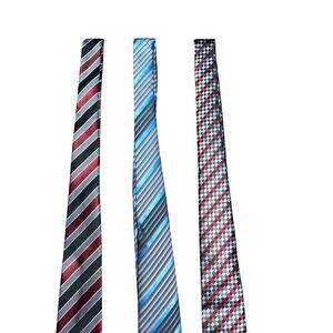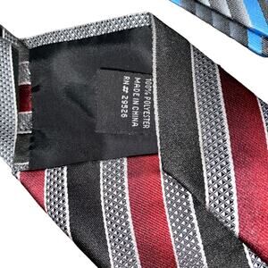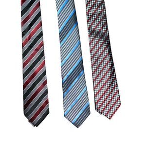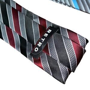 New NWOT Retro Men's Bundle Set of 3 Red Blue Gray Striped Geometric Neck Ties