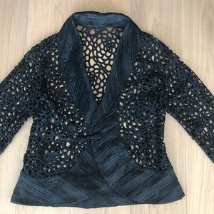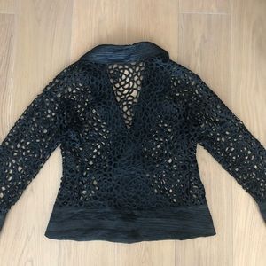 New NWOT unique black rose floral lace cardigan ridge pleat outline size large