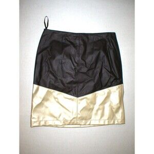 W by Worth New York The dark walnut brown is leather the gold is faux leather Lined Beautiful skirt! Wear to school, work, church, or out to dinner or wherever! This skirt is very high quality and the fit and feel are that of a $600 skirt!! Pair it with sandals, boots, or for a polished look with flats or heels.