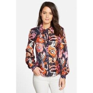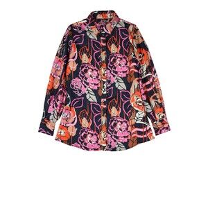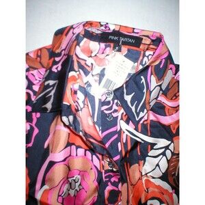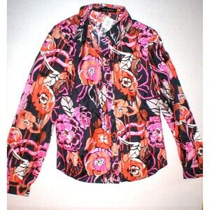 New NWT $395 Womens Pink Tartan Camelia Silk Shirt 2 Flowers Blue Pink Orange