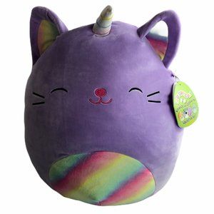 New NWT BIG Squishmallow 16" Cienna Rainbow Unicorn Cat Kitten Purple JUMBO