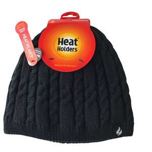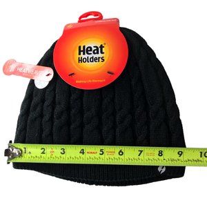 New NWT Beanie Knit Hat Cap Fleece-Lined Black. Thick. Heat Holders. Model "H