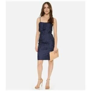 New NWT Black Halo Ora Cutout Lace Sheath Party Navy Blue Foral Mini Dress Size 6