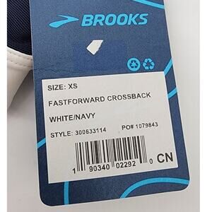 New NWT Brooks Fast Forward Crossback Sports Bra White Navy Size XS