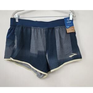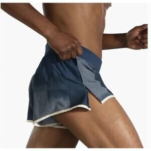 New NWT Brooks Men's Sherpa 3" Split Shorts Indigo Rush Altitude Print Medium