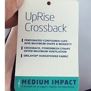 Crossback style and contoured shape make this sports bra easy to wear on its own or under a tank. Breathable DriLayer® fabric and mesh straps support A/B cups.