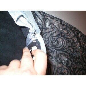 Designer Badgley Mischka Cocktail Dress by Badgley Mischka. Make a sparkling statement in this all-over sequin dress with sexy illusion detail. The swirl pattern of sequins is a unique accent. You will be turning heads in this sparkling silhouette all night long. Arms zip or unzip at wrist Cocktail dress. Scoop neckline. Illusion yoke. Back hook-and-eye closure with keyhole accent. Back hidden zipper closure. Long sleeves. Illusion hemline. Sequin embellishments throughout. Lined. The ladylike silhouette is a classically chic style. The red in the picture of the back is a string, nothing on the dress.
