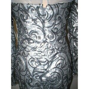 New NWT Designer Silver Badgley Mischka Womens 6 Metallic Sequin Cocktail Dress