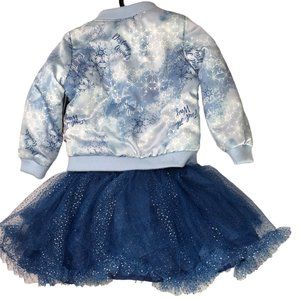 New NWT Disney Frozen Outfit Set Blue Coat Jacket + Tutu Skirt Silver Glitter 2T
