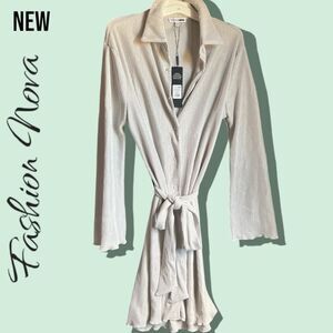 New NWT Fashion Nova On The Clock Plisse Mini Dress - Silver - Small