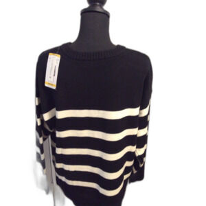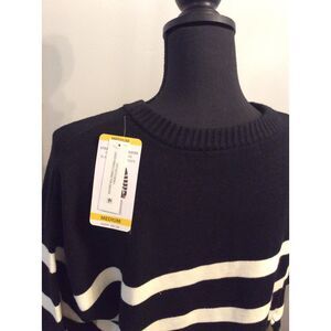 New NWT French Connection Black Striped Tunic Sweater Size Medium Womens Warm