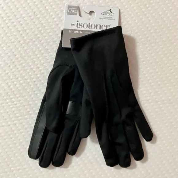 New NWT ISOTONER Black soft Smart touch smart dri eco touch gloves lined ONE SZ