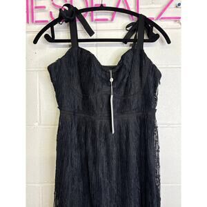 New NWT Jonathan Simkhai Black Silk Lace Plisse Tie Strap Midi Dress Size 10