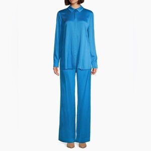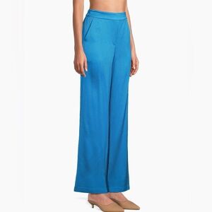 New NWT Kobi Halperin Maria Crinkled Wide-Leg Pants in Ocean Blue Size Small