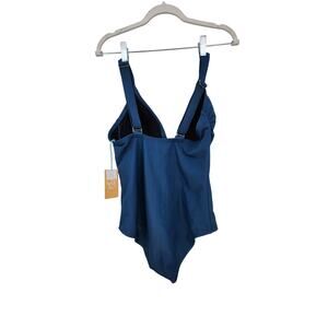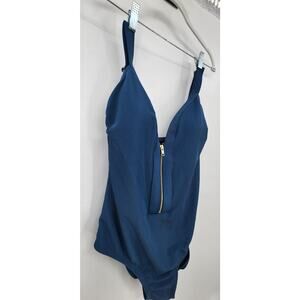 New NWT Kona Sol Blue Ribbed Front Zipper One Piece Swimsuit Size Large