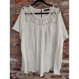 New NWT Lane Bryant Top Size 26 4x Gauze With Crochet Lace Insert Shirt Blouse O