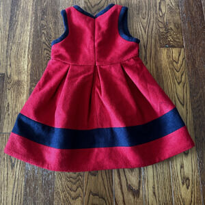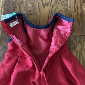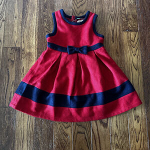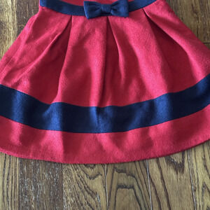 New NWT Little Girl's Christmas Dress 110 US 4T 5T Red Navy Wool Blend Bow Lined