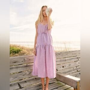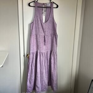 New NWT Matthew Bruch Drawstring Tank Midi Dress Lavender Melange Linen