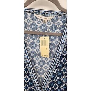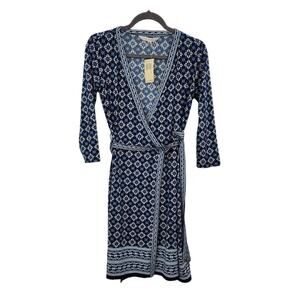 New NWT Max Studio Geometric Wrap Dress Long Sleeve Size Small Navy White