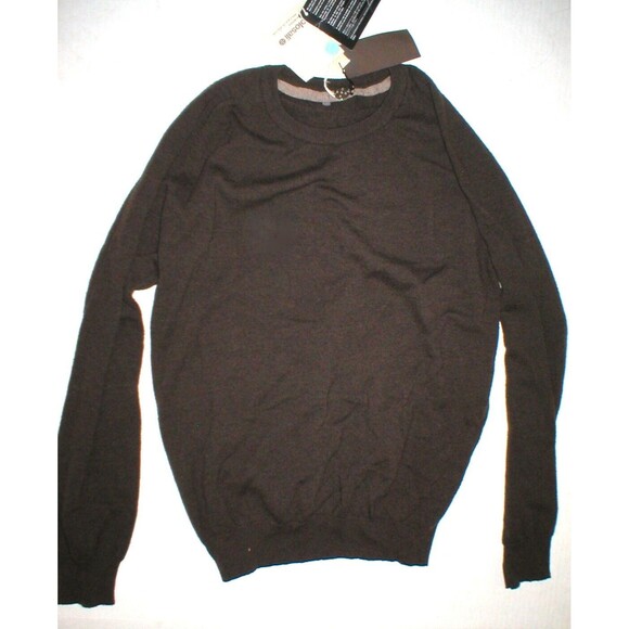 New NWT Mens Sweater XL Italy Solosali Designer Wool Cashmere Dark Brown Crew