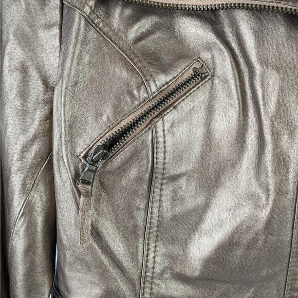 New NWT Mixit Gold Womens Medium Authentic Leather Zipper Jacket Wide Collar