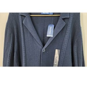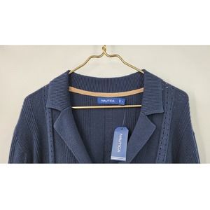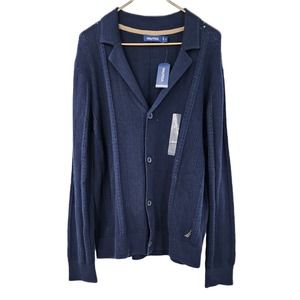 New NWT Nautica Grandpa Knit Button Down Sweater Size Large Navy Blue