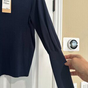 New NWT Nordstrom Halogen Ribbed Sweater Top Navy Size Medium w Sleeve Detail