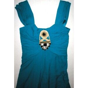 New NWT Ocean Blue Temperley London Dress Womens 12 Evening Gown Jewels Silk Emb