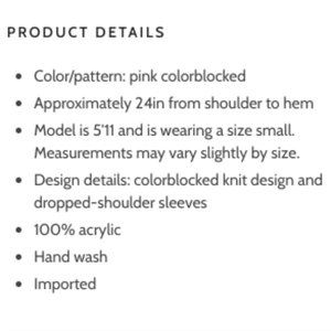 NEW OLIVIA RUBIN "Aria" Colorblock Sweater