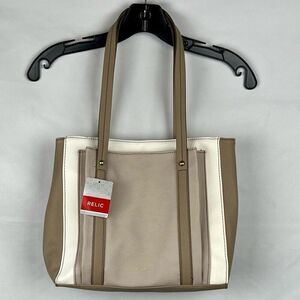 New! NWT Relic Two Tone Purse. There is a small stain/mark on the bottom. Please see photos. Measurements in photos. In good, pre-loved (used) condition.