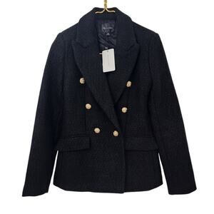 New NWT Revolve Line And Dot Darling Black Tweed Wool Blend S Blazer Jacket XS