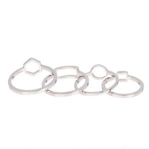Boho Silver Ring Stack Stacking Geo Geometric Rhodium