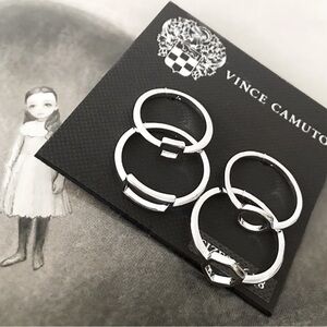 New NWT Rhodium Plated Vince Camuto Silver Geo Stacking Stack Ring Set