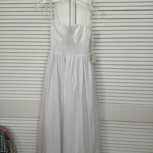 New NWT STAUD Landry White Corset Drop Waist Midi Dress Size S