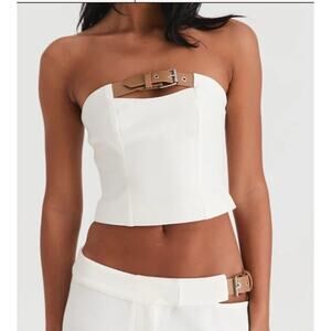 Introducing our Lucia top. Made from our best selling mid weight stretch suiting, our Lucia Top is designed to be paired back with our Lucia Pant for a head-to-toe co-ord. It features a side seam zipper for easy wear, and the buckle is adjustable at the bust for extra support.