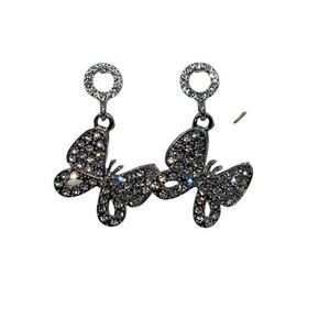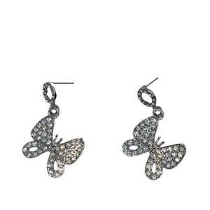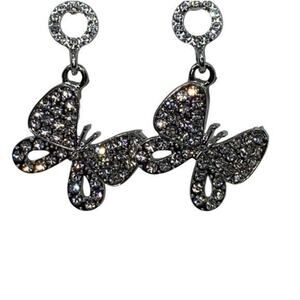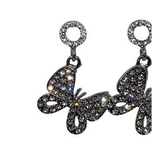 New NWT Silver-Tone Clear Rhinestone Dangle Butterfly Earrings