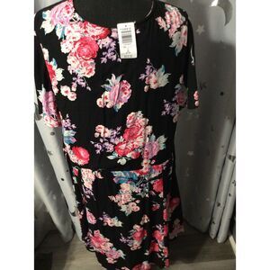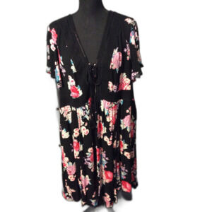 New NWT Torrid Plus size 3X (22-24) Black Floral Lace Up Dress