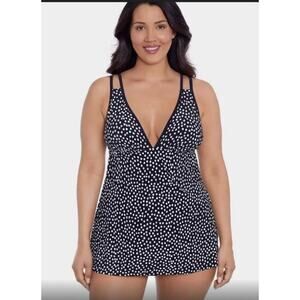 New NWT Trimshaper One Piece Plus Size Polka Dot Swimsuit Dress 18 Black White