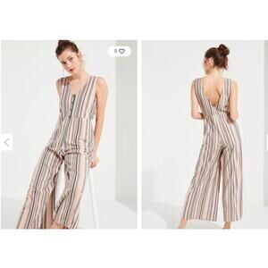 New NWT Urban Outfitters Striped Cotton Blend Jumpsuit Small