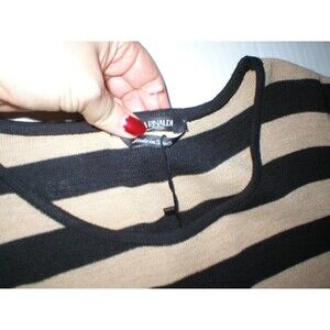 New NWT Womens Max Mara Marina Rinaldi Sweater L Black Tan Lace Italy Wool Strip