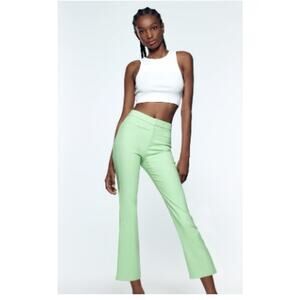 New NWT Zara MINI FLARE TROUSERS Mint Light Green Size Large